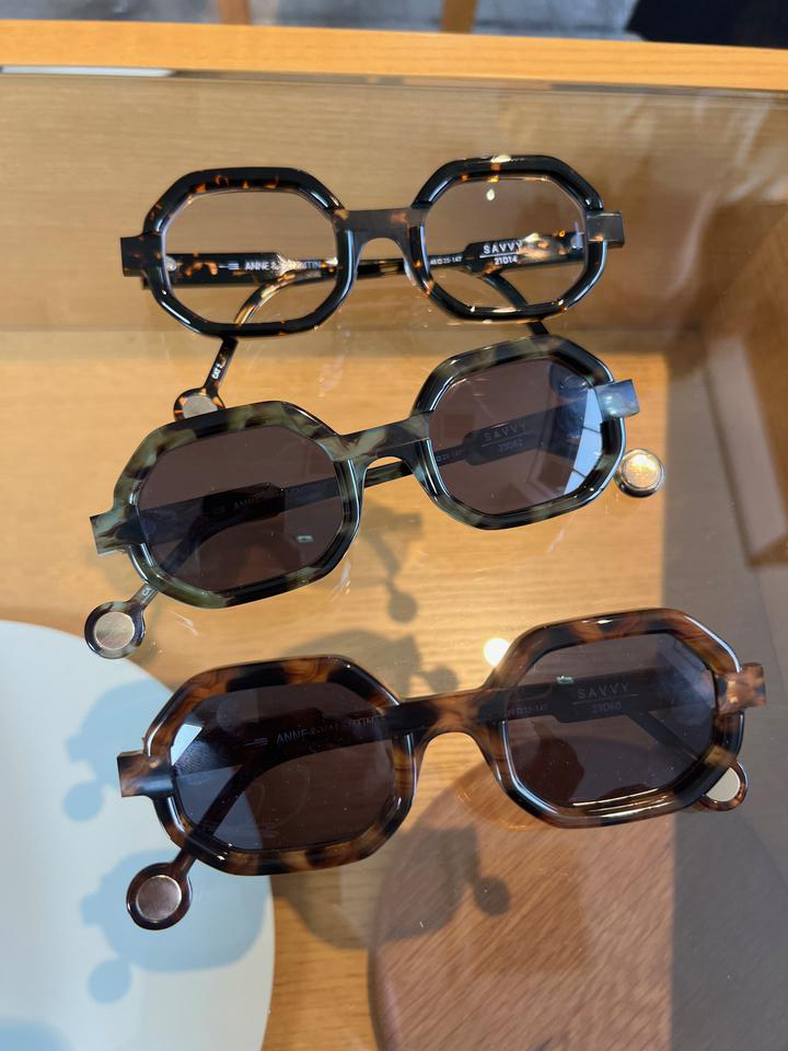 多角形なんですが、ぷっくりしたアセテートなので丸みがありカワイイデザインになっています。