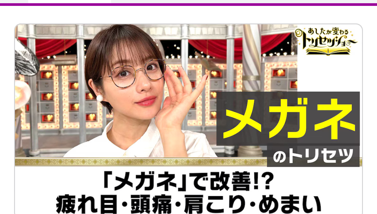 先日、NHK でトリセツショーで 8割の人のメガネが合っていないとの内容がありました。