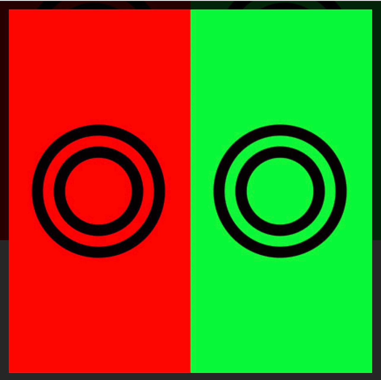 この赤と緑の表示。どちらか明るく見えますか?