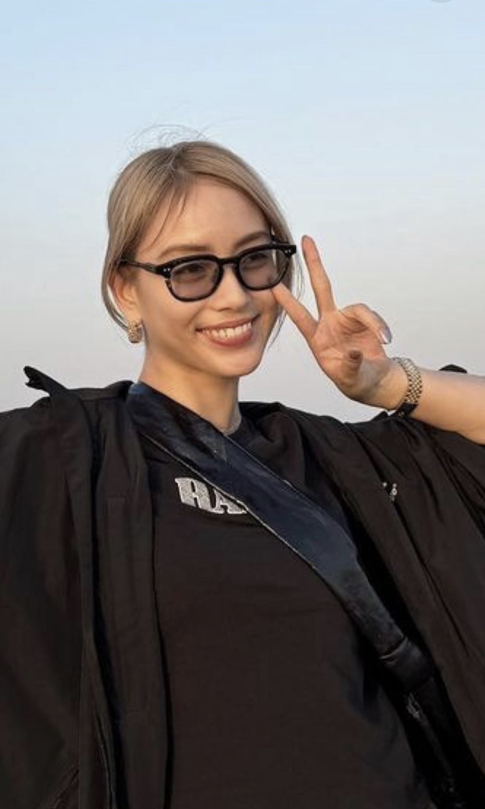 薄いカラーレンズで着用されています。