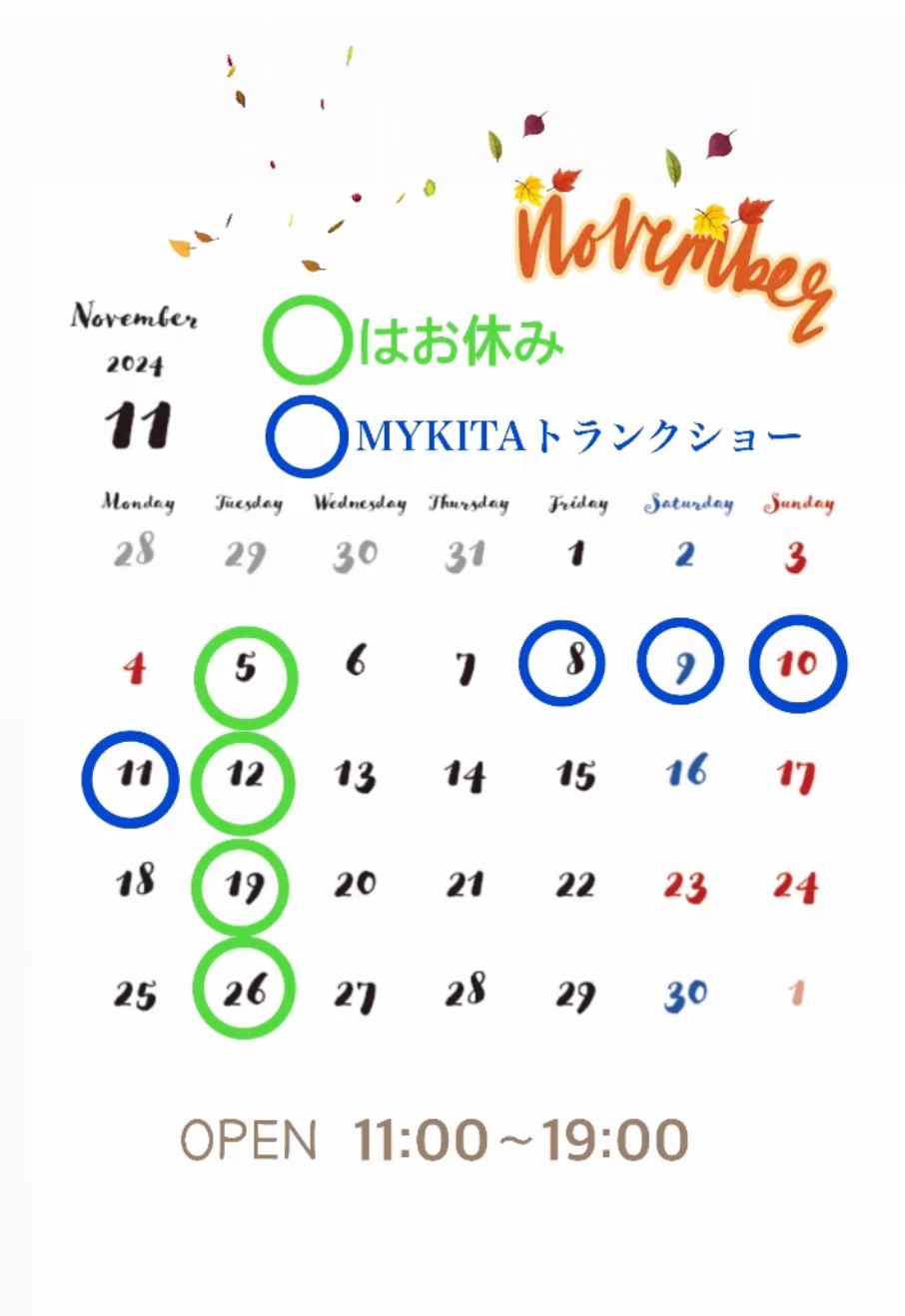 11月の営業スケジュールと 2つのご報告を